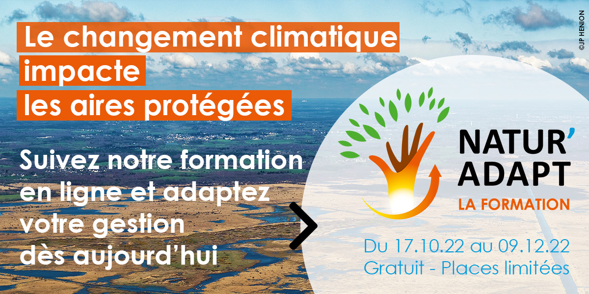 Vous êtes gestionnaires d’aires protégées ? Vous voulez adapter votre gestion aux modifications liées au changement climatique ? Le projet LIFE Natur'Adapt vous propose une formation professionnelle, gratuite, en ligne, d’une durée de 15h et construite en 7 séquences* de cours.