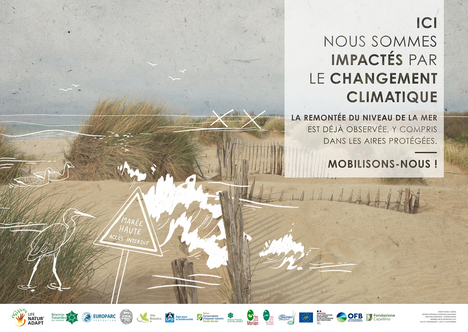 Afin de sensibiliser le public à ces impacts, 𝗹𝗲 𝗽𝗿𝗼𝗷𝗲𝘁 𝗟𝗜𝗙𝗘 𝗡𝗮𝘁𝘂𝗿’𝗔𝗱𝗮𝗽𝘁 𝗮 𝗶𝗺𝗮𝗴𝗶𝗻𝗲́ 𝗹𝗲𝘀 𝗲𝗳𝗳𝗲𝘁𝘀 𝗱𝗶𝗿𝗲𝗰𝘁𝘀 𝗲𝘁 𝗶𝗻𝗱𝗶𝗿𝗲𝗰𝘁𝘀 que trois réserves naturelles pourraient connaitre dans le futur, le tout 𝗶𝗹𝗹𝘂𝘀𝘁𝗿𝗲́𝘀 𝗲𝗻 𝘂𝗻 𝗰𝗼𝘂𝗽 𝗱𝗲 𝗰𝗿𝗮𝘆𝗼𝗻 !Remontée du niveau de la mer, baisse de l’enneigement, perturbations du cycle de l’eau, font partie des différents effets déjà observés dans la nature.